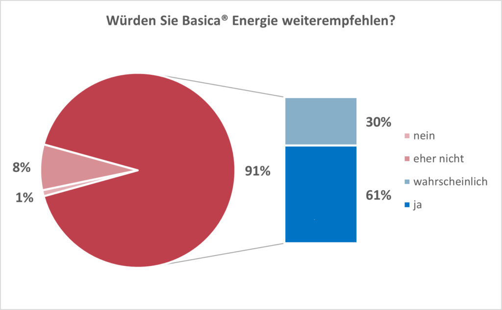 • 88 % der Testerpersonen sind überzeugt von den kombinierten Inhaltsstoffen von Basica® Energie – 49 % vergeben die Bestnote 1, 39 % die Note 2.